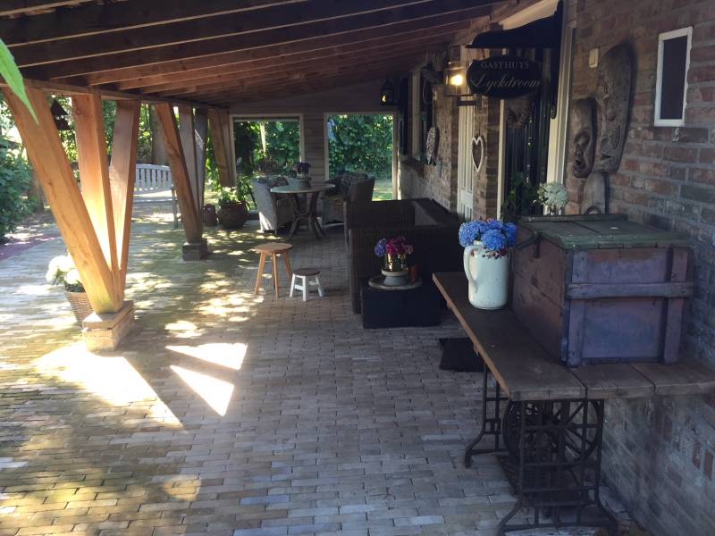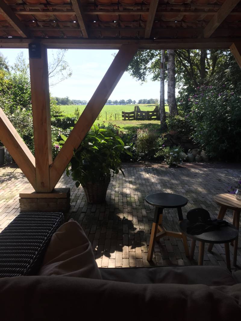 loungen op de ruime zonnige veranda met een prachtig uitzicht
